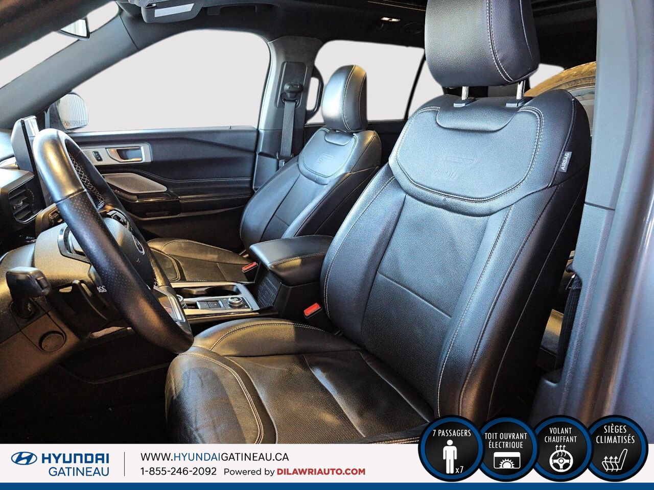 fauteuils capitaine sport avec surface en cuir -comprend : chauffants et ventilés, empiècements microperforés, piqûres contrastantes argent de style city, emblème st, siège conducteur à réglage électrique en 10 directions (soutien lombaire, inclinaison de l'assise et inclinaison du dossier à réglage électrique), et siège passager avant à réglage électrique en 8 directions (soutien lombaire et inclinaison du dossier à réglage électrique) et fonction de mémorisation pour le siège conducteur