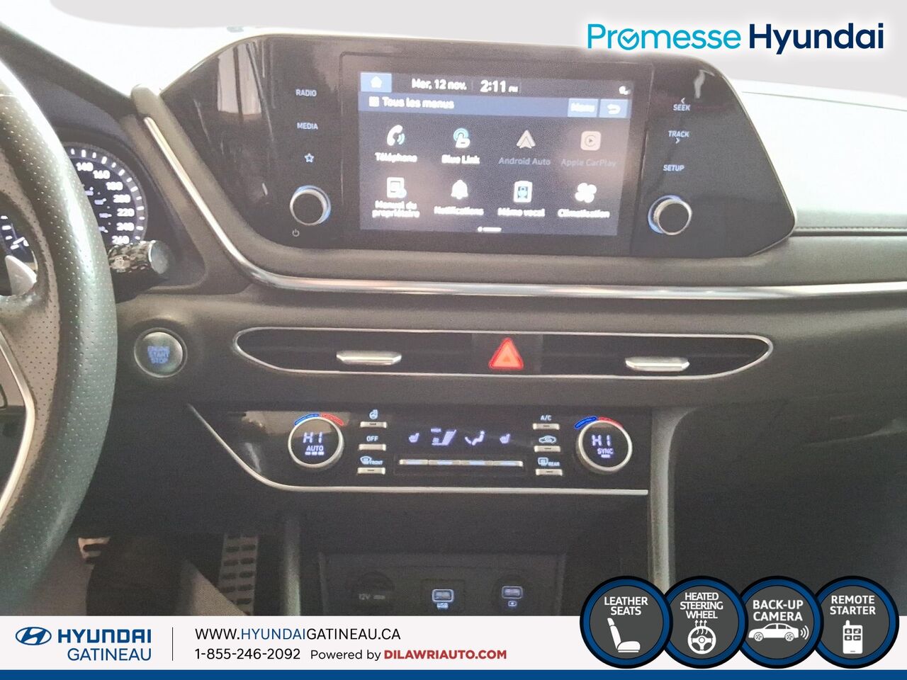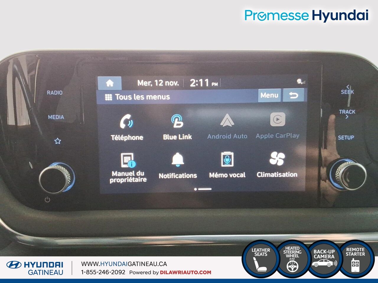 ◊†^**‡Offres valides pour une durée limitée et sous réserve de changement ou d’annulation sans préavis. Couleur du véhicule sous réserve de sa disponibilité. Les frais de livraison et de destination comprennent les frais de transport et de préparation et un réservoir plein de carburant. Le concessionnaire peut vendre à prix moindre. Les stocks sont limités, le concessionnaire pourrait devoir commander le véhicule. Cette offre ne peut être combinée ou utilisée en conjonction avec toute autre offre disponible. L'offre ne peut être transférée ni cédée. Aucun échange de véhicule requis. Visitez www.hyundaicanada.com ou un concessionnaire pour tous les détails. MD/MC Les noms, logos, noms de produits, noms des caractéristiques, images et slogans Hyundai sont des marques de commerce appartenant à (ou utilisées sous licence par) Hyundai Auto Canada Corp. Toutes les autres marques sont la propriété de leurs détenteurs respectifs.